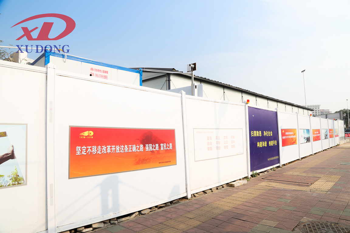 PVC圍擋廣泛應(yīng)用于工地施工、道路施工、房產(chǎn)建筑等常見的施工項(xiàng)目,起到安全防護(hù)、美觀的作用。PVC圍擋安裝采用膨脹螺絲固定,無須焊接,安裝簡便,安裝費(fèi)用低;并拆卸與移動方便,便于特殊情況下的疏導(dǎo);遭破壞后更換快捷,且損壞的PVC圍擋無需全部報(bào)廢,可再次修復(fù)重復(fù)使用;維修快捷,損壞后可快速局部拼裝或更換。