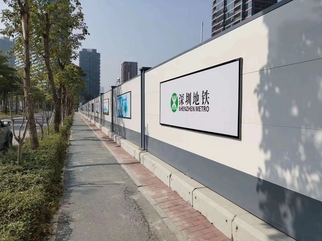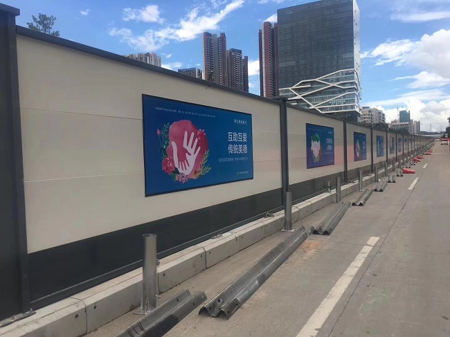 鋼結構A款圍擋在生產工藝上,采用框架式結構,且每塊面板都有兩條橫向方通龍骨,兩側用自制角鐵做豎向龍骨,標準化拼裝。而且全部圍擋全部采用金屬材料,表面噴涂烤漆處理,經久耐用、不易褪色、耐腐蝕,可循環(huán)使用5年時間,能夠降低成本。