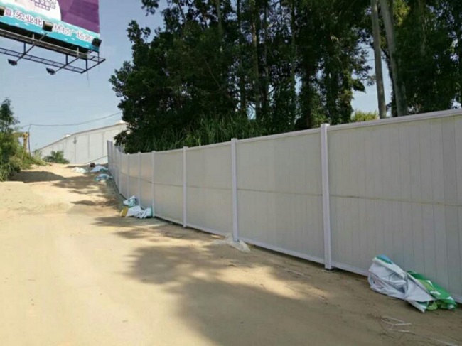 3、安裝方便:產品結構及觸頭采用高強度專用螺釘固定組裝。與金屬欄桿相比:焊接,加工速度快,交貨時間短;安裝簡單,PVC施工圍擋拆卸移動方便,特殊情況下易于疏浚;損壞后快速更換;